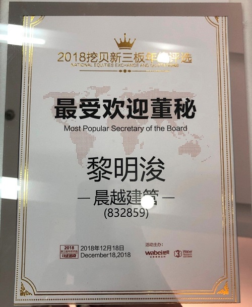 2016年,集團順利進入新三板創(chuàng)新層,業(yè)務開始向省外市場及專業(yè)市場拓展,省外市場逐步進入云南、貴州、西藏市場,并嘗試在甘肅、寧夏、青海等西北市場接洽業(yè)務,專業(yè)市場開始拓展核電、軌道交通、水利水電、能源、環(huán)保、國防工程、航空航天等專業(yè)領域。為配合集團在國內的業(yè)務拓展,并加強集團在資本市場的影響力,黎明浚先后輾轉北京、上海、深圳、廣州等地開展路演,全年路演20余場,并先后接待全國各地的券商、投資機構來訪50余家,向近千名投資者、投資機構介紹了晨越建管的經營模式、發(fā)展歷程及戰(zhàn)略。截至目前,集團已實施三次定向增發(fā),共募集資金近6000萬元,成功引入6家做市商,完成分紅派息近8000萬元。2018年,黎明浚在資本市場的出色表現(xiàn)得到投資機構和媒體的廣泛認可,在挖貝網組織的全國性評比中,被選為“2018年度最受歡迎董秘”。