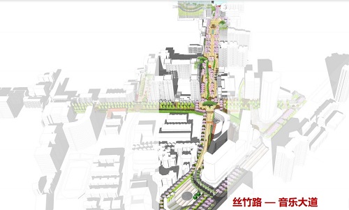 天府音樂(lè)坊以世界級(jí)音樂(lè)廳為依托,以實(shí)力強(qiáng)勁的川音為孵化平臺(tái),透過(guò)強(qiáng)勁的市、區(qū)輔助,在周邊的街區(qū)內(nèi),強(qiáng)力引入高品質(zhì)的多元演藝設(shè)施及產(chǎn)業(yè)配套設(shè)施。未來(lái)五年內(nèi)將打造成為“三城三都”中的“國(guó)際音樂(lè)之都”的核心區(qū)域和國(guó)際音樂(lè)生態(tài)示范區(qū)。音樂(lè)大道及音樂(lè)廣場(chǎng)(絲竹路)項(xiàng)目是天府音樂(lè)坊的重要組成部分。