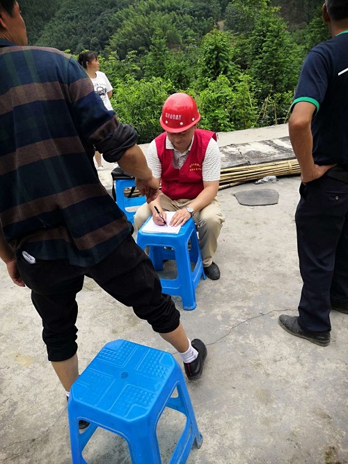 何海波:“剛到雙河鎮(zhèn)政府搭建的臨時(shí)辦公帳篷,還來不及放下行李,就接到派至筆架村核查災(zāi)損情況的任務(wù)。早已在此等候的村支書接到我們后,安排各隊(duì)隊(duì)長分別帶領(lǐng)我們應(yīng)急評(píng)估第二批次第三小組專家四人,奔赴筆架村各隊(duì),立即投入到應(yīng)急評(píng)估工作中。”