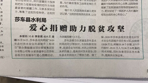5月14日,莎車(chē)縣水利局同晨越建管組織“2020年農(nóng)村飲水安全鞏固提升工程項(xiàng)目”15家參建單位在莎車(chē)縣塔尕爾其鎮(zhèn)舉行愛(ài)心捐贈(zèng)活動(dòng),為該鎮(zhèn)捐贈(zèng)現(xiàn)金7.5萬(wàn)元。