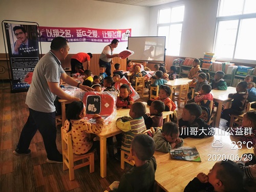 2020年6月29日,項(xiàng)目部將募集到的書包、衣物、學(xué)習(xí)用品等運(yùn)送并分發(fā)給昭覺縣且莫鄉(xiāng)洼赤覺村幼教點(diǎn)、支爾莫鄉(xiāng)來洛村幼教點(diǎn)、阿舉某佐村幼教點(diǎn)、龍溝鄉(xiāng)古爾以井村幼教點(diǎn)及美姑縣采紅鄉(xiāng)采紅村共181個(gè)孩子的手上。