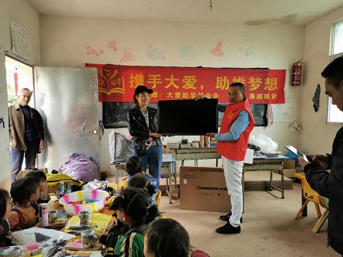 2019年9月,項(xiàng)目部往昭覺縣且莫鄉(xiāng)洼赤覺村幼教點(diǎn)、支爾莫鄉(xiāng)來洛村幼教點(diǎn)、阿舉某佐村幼教點(diǎn)送電視機(jī)、熱水器、文具、衣物等,共125件套。
