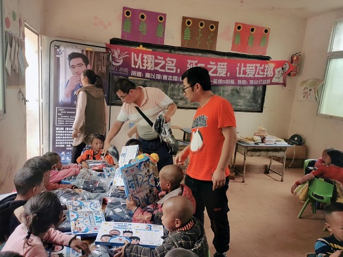 晨越工程師們號(hào)召社會(huì)人士捐贈(zèng)衣物,工作之余,他們運(yùn)送衣物到各幼教點(diǎn)。圖為2019年11月,往支爾莫鄉(xiāng)來洛村幼教點(diǎn)送的冬天衣物。