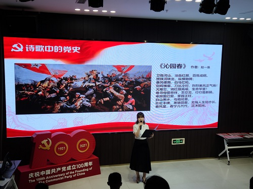 黨史講述中,結合內容,多處插入毛澤東《沁園春.雪》、《七律.人民解放軍占領南京》、先烈趙一曼《沁園春》詩詞,還有新詩詞,由參會黨員、積極分子動情朗誦和領誦,全場深感震撼、鼓舞,互動融融。