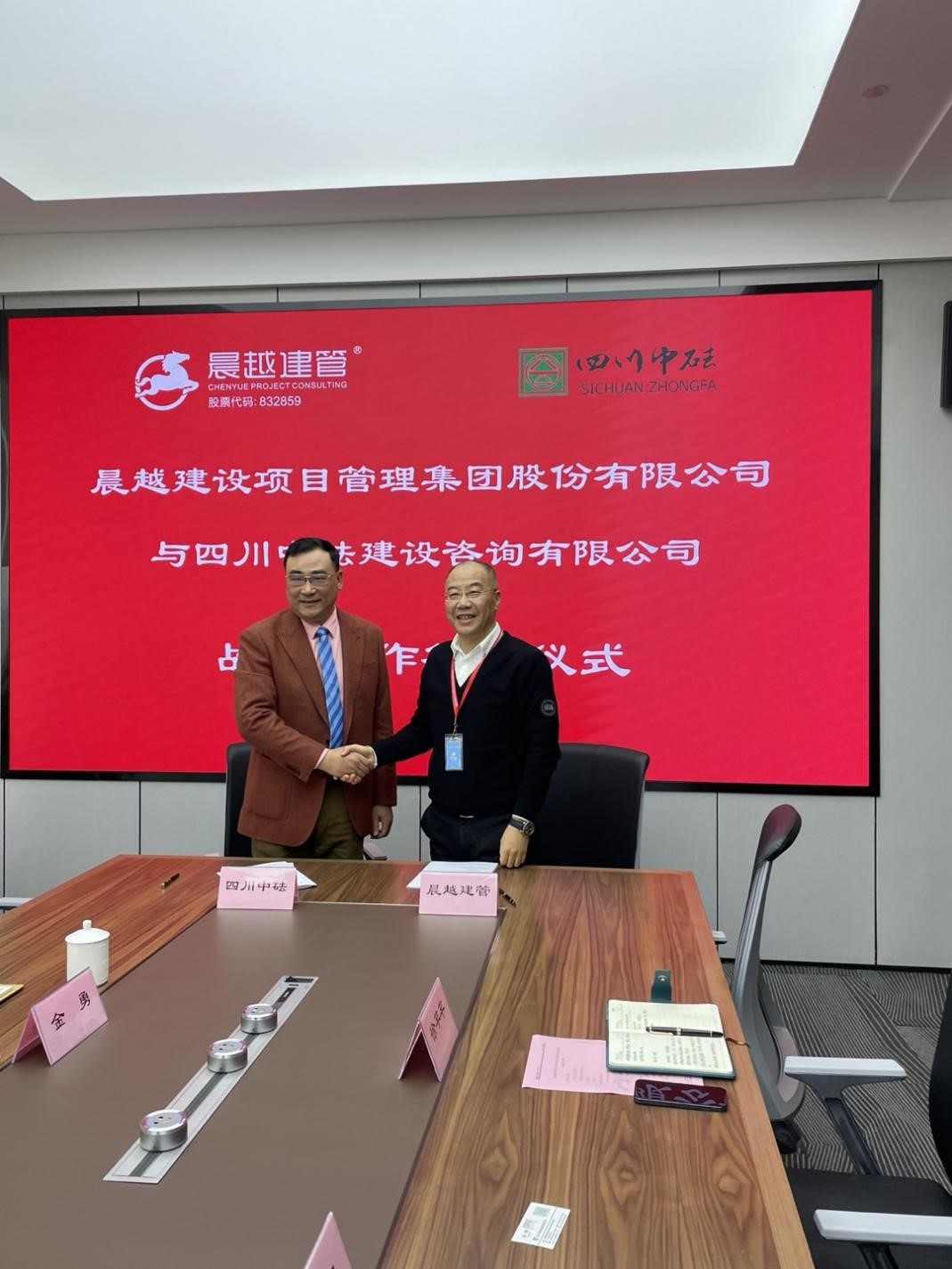 2021年12月15日,集團(tuán)與四川中砝建設(shè)咨詢有限公司戰(zhàn)略合作簽約儀式在集團(tuán)總部大樓23層舉行。四川中砝建設(shè)咨詢有限公司總經(jīng)理余紅兵、副總經(jīng)理金勇、總經(jīng)辦經(jīng)理王婷,晨越建管集團(tuán)黨委書(shū)記、董事長(zhǎng)王宏毅,副總裁陳代蓮、公司領(lǐng)導(dǎo)徐芊芊、資源保障部總經(jīng)理王固越出席了簽約儀式。