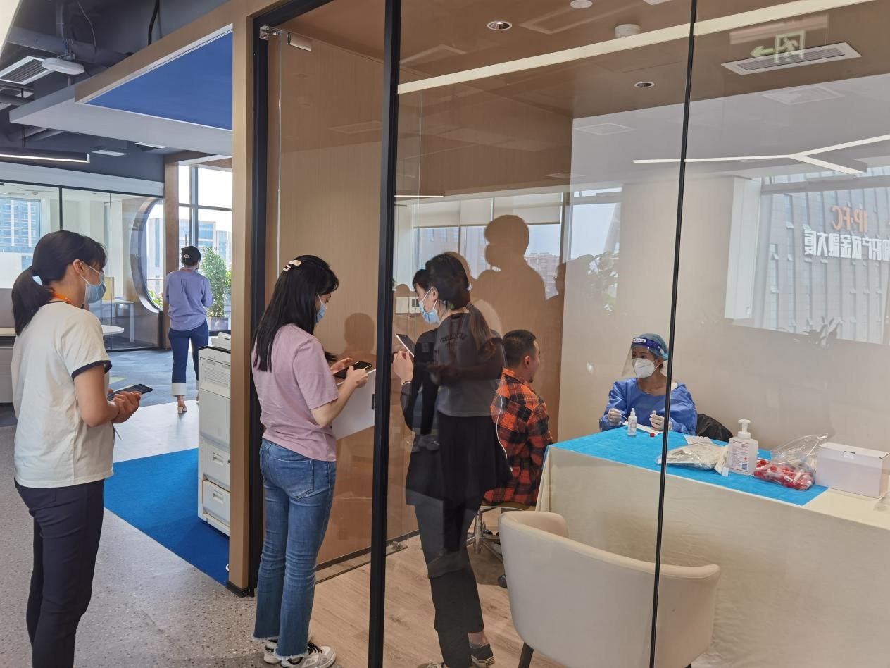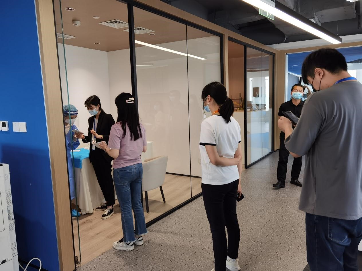 為全面筑牢疫情防線,4月11日下午,晨越建管集團積極落實成都高新區(qū)公園城市建設(shè)局規(guī)上企業(yè)防疫工作要求,迅速組織協(xié)調(diào)專業(yè)機構(gòu)上門對集團辦公全體人員開展核酸檢測。本輪核酸檢測覆蓋集團機關(guān)人員、物業(yè)人員共269人。