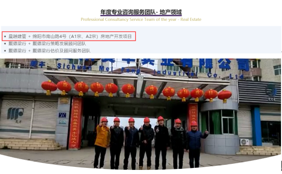 年度專業(yè)咨詢服務團隊(地產(chǎn)領域)——綿陽市南山路4號A1宗、A2宗房地產(chǎn)開發(fā)項目;