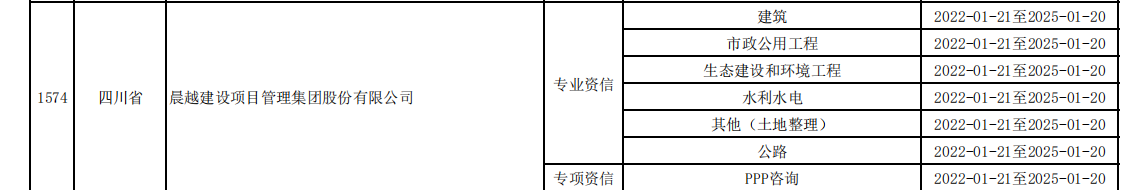 中國工程咨詢協(xié)會(huì)根據(jù)《工程咨詢行業(yè)管理辦法》(國家發(fā)展改革委2017年第9號(hào)令)、《工程咨詢單位資信評(píng)價(jià)標(biāo)準(zhǔn)》(發(fā)改投資規(guī)[2018]623號(hào))的有關(guān)規(guī)定及《國家發(fā)展改革委辦公廳關(guān)于調(diào)整和改進(jìn)工程咨詢單位甲級(jí)資信評(píng)價(jià)工作的復(fù)函》(發(fā)改辦投資[2021]706號(hào))的相關(guān)要求,組織開展了2021年工程咨詢單位甲級(jí)資信評(píng)價(jià)工作。2021年10月,集團(tuán)資質(zhì)管理部、咨詢部提交相關(guān)申請(qǐng)材料,經(jīng)過中國工程咨詢協(xié)會(huì)組織專家進(jìn)行評(píng)審并公示公告,根據(jù)中國工程咨詢協(xié)會(huì)公告(2022年第1號(hào)),確定晨越建管集團(tuán)取得7個(gè)工程咨詢單位甲級(jí)資信。