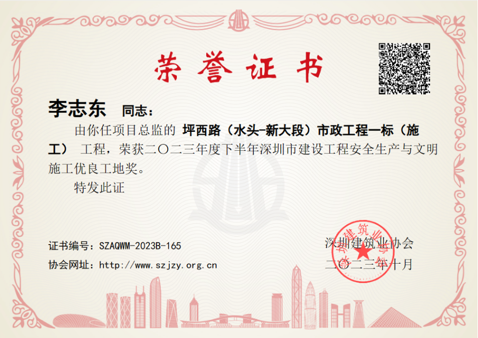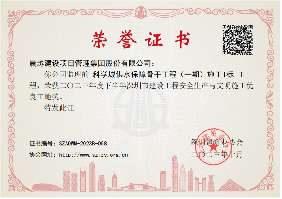 晨越建管集團(tuán)項(xiàng)目部喜報(bào)連連!繼集團(tuán)深圳市濱河水質(zhì)凈化廠提標(biāo)擴(kuò)建工程項(xiàng)目獲“深圳市建設(shè)工程安全生產(chǎn)與文明施工優(yōu)良工地獎(jiǎng)”后,近日,集團(tuán)坪西路(水頭-新大段)市政工程、大鵬新區(qū)養(yǎng)老院工程項(xiàng)目、科學(xué)城供水保障骨干工程(一期)三項(xiàng)目再獲深圳市建筑業(yè)協(xié)會(huì)頒發(fā)的“2023 年下半年度深圳市建設(shè)工程安全生產(chǎn)與文明施工優(yōu)良工地獎(jiǎng)”。
