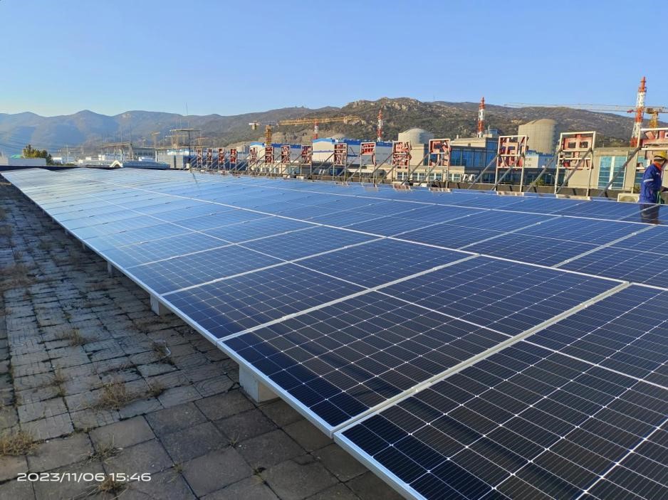 田灣核電站1-6號機(jī)組分布式光伏項(xiàng)目,利用生產(chǎn)辦公樓等12個(gè)屋面、停車場區(qū)域新設(shè)置光伏一體化車棚,安裝光伏組件4229個(gè),總裝機(jī)容量2304.805千瓦。項(xiàng)目全部建成后,每年可為電網(wǎng)提供清潔電能2440.79兆瓦時(shí),每年可節(jié)約標(biāo)準(zhǔn)煤約732.24噸,減少二氧化碳排放量約2001.45噸、二氧化硫排放量約16.39噸。