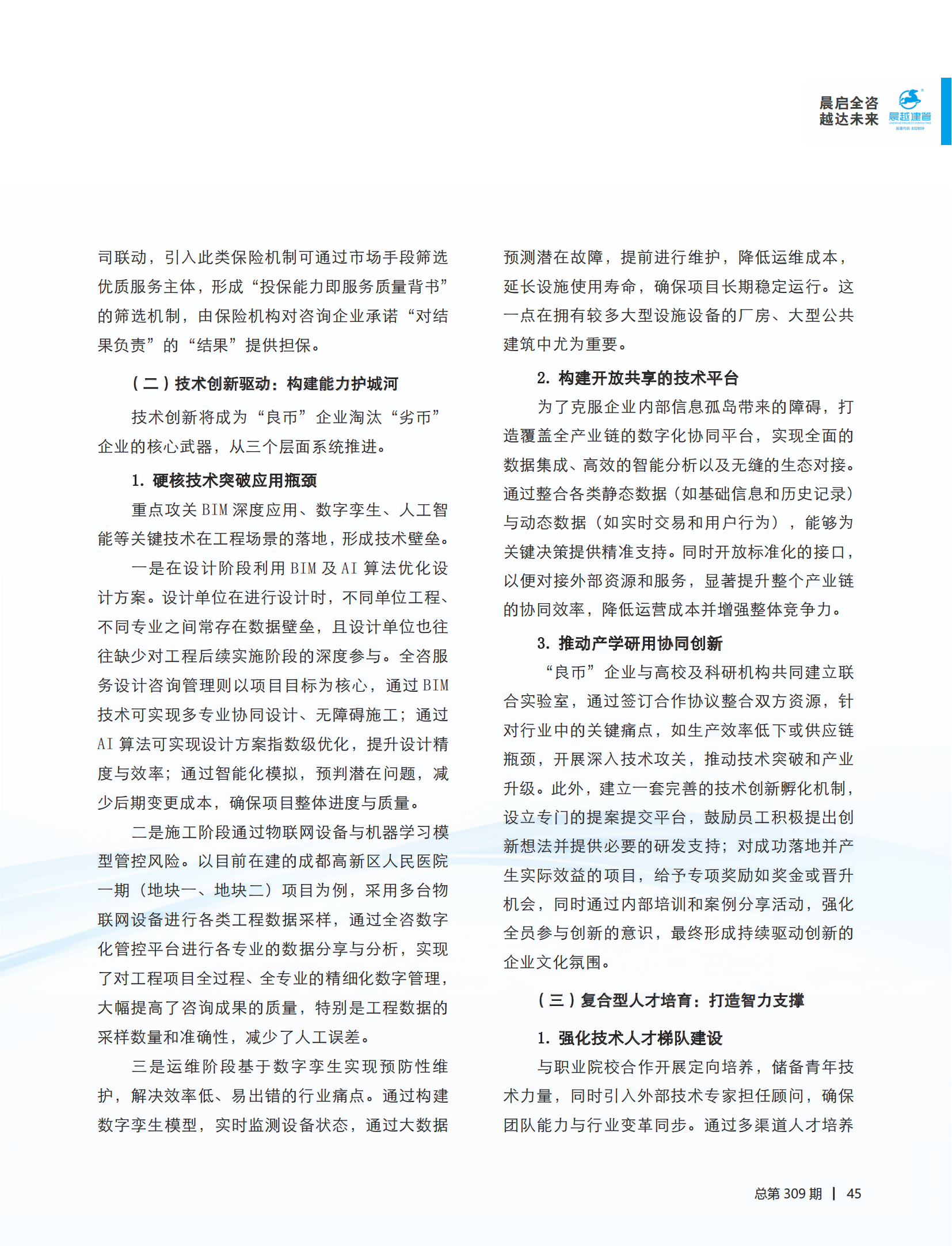 此次文章發(fā)表,不僅為行業(yè)同仁提供了一份高質(zhì)量的全咨實(shí)踐指南和理論參考,更以專業(yè)視角展現(xiàn)了全咨市場(chǎng)發(fā)展規(guī)律,助力行業(yè)突破全咨發(fā)展瓶頸,以期凝聚“良幣驅(qū)逐劣幣”的行業(yè)共識(shí),推動(dòng)全過程工程咨詢升級(jí)換代。