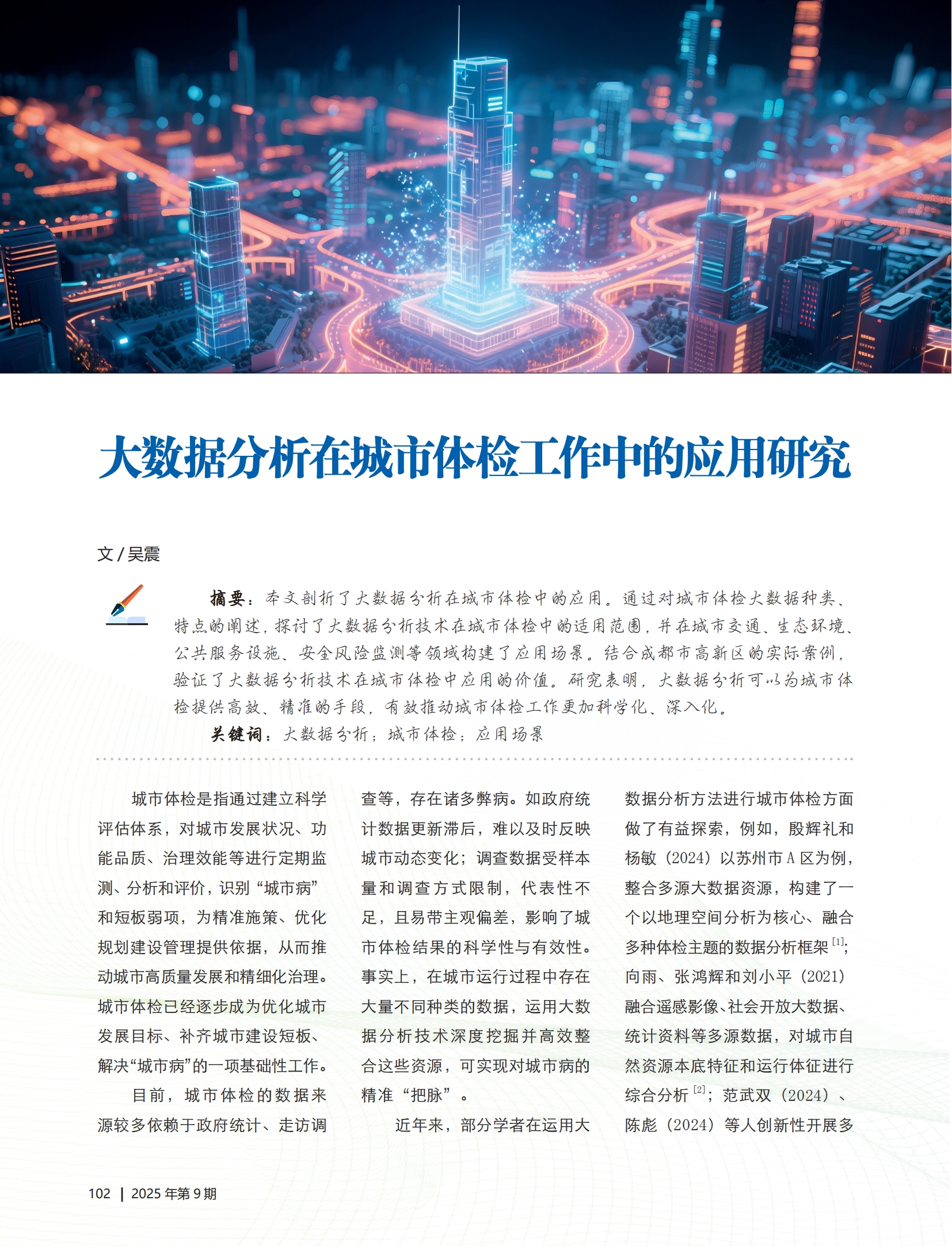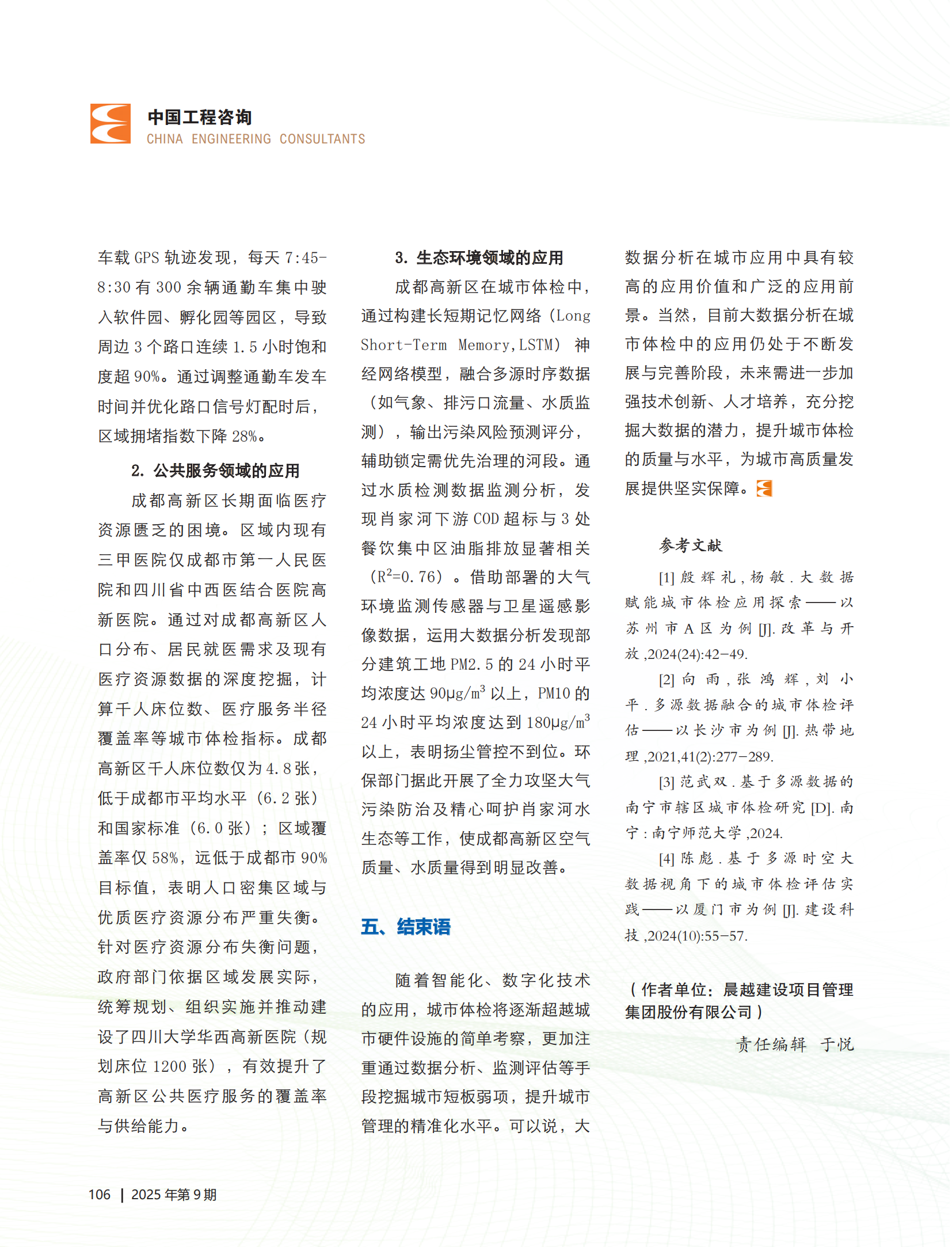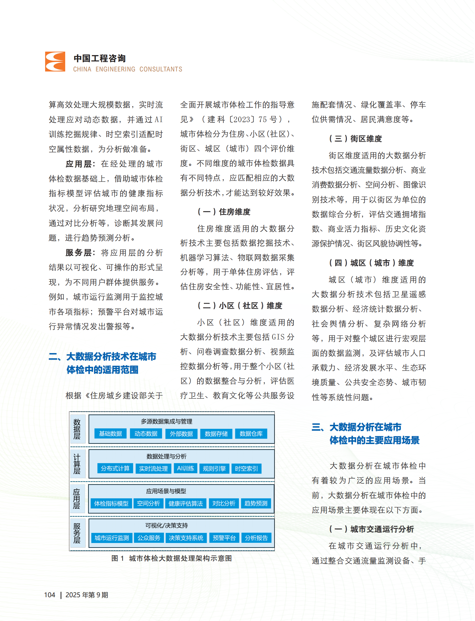 近日,集團(tuán)聚焦城市體檢領(lǐng)域的專題文章在《中國(guó)工程咨詢》雜志2025年第9期“專題研究”欄目發(fā)表,文章深度剖析了大數(shù)據(jù)分析技術(shù)在城市體檢中的多維度應(yīng)用路徑,并以實(shí)證案例充分展現(xiàn)其在提升城市治理效能中的顯著成效,為行業(yè)提供了兼具理論價(jià)值與實(shí)踐參考的研究成果。