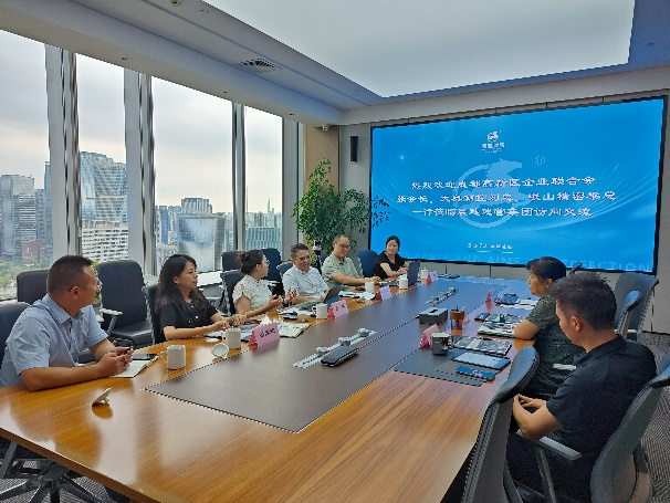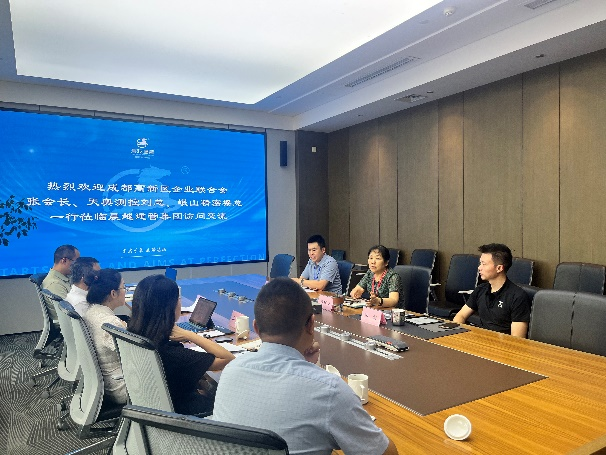 8 月 28 日,成都高新區(qū)企業(yè)聯(lián)合會會長張敏、成都天奧測控技術有限公司總經(jīng)理劉華、成都岷山精密測試與儀器技術研究院秘書長梁陳超一行到訪集團進行交流。集團副總裁陳代蓮、核電及新能源事業(yè)部副總經(jīng)理張雷、院士工作站助理研究員張珽參加接待。