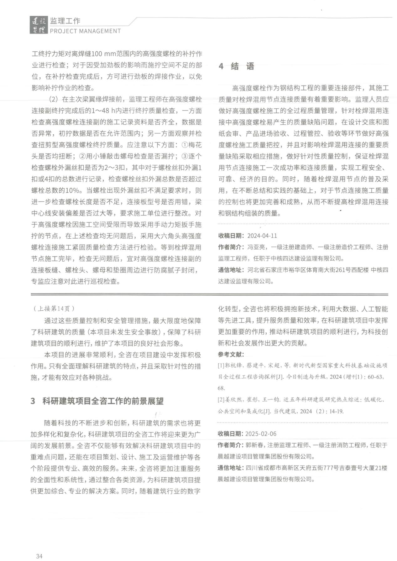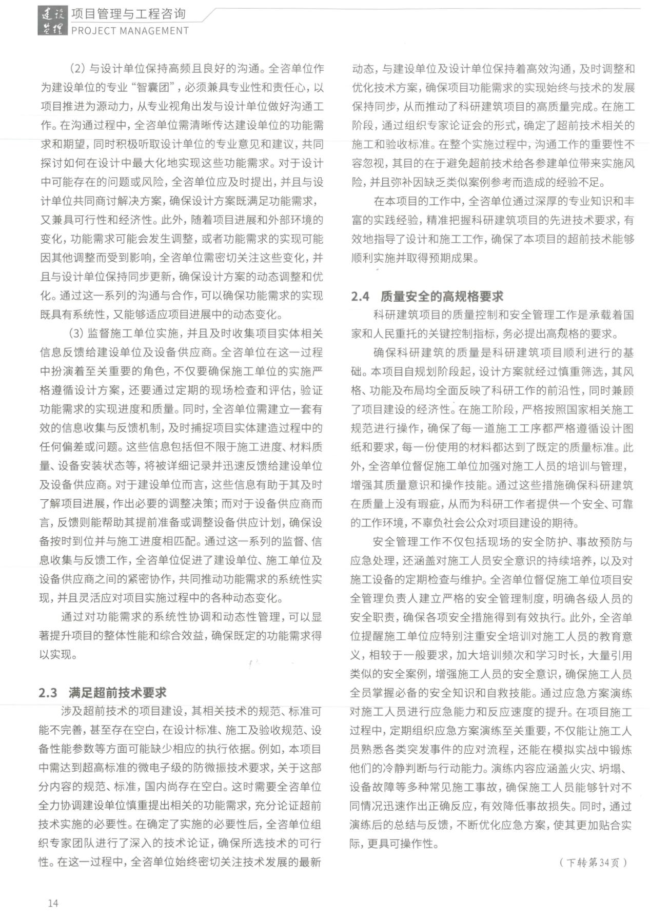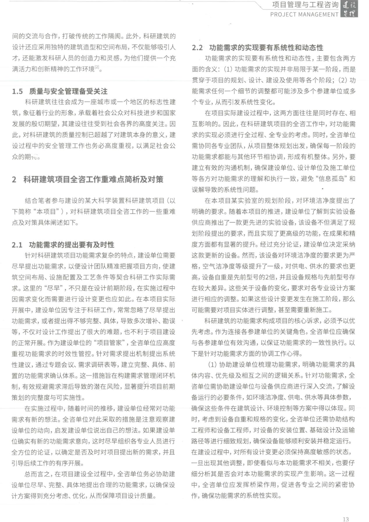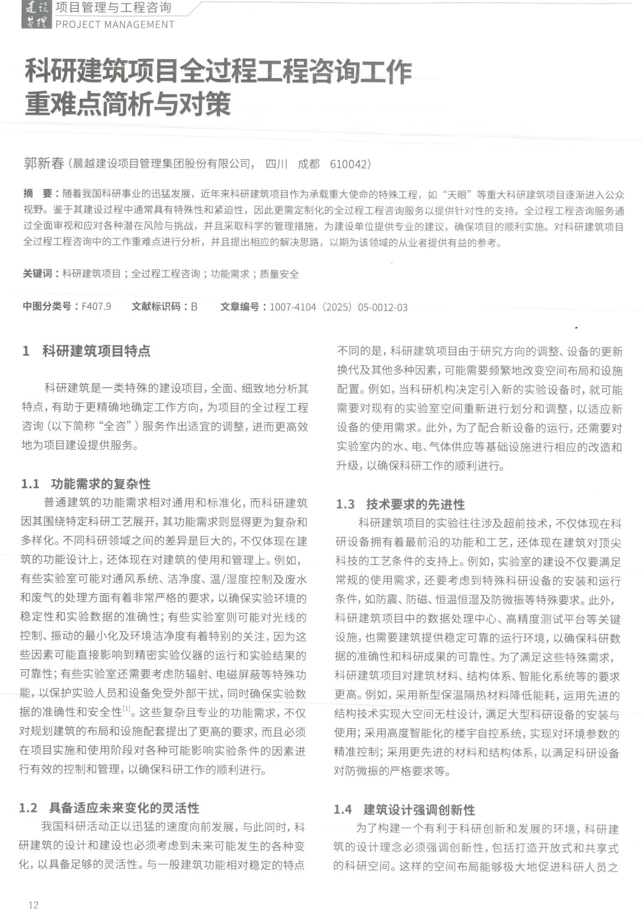 近日,晨越建管集團(tuán)全咨一部《科研建筑項(xiàng)目全過程工程咨詢工作重難點(diǎn)簡析與對(duì)策》文章在《建設(shè)監(jiān)理》雜志2025年第5期發(fā)表。