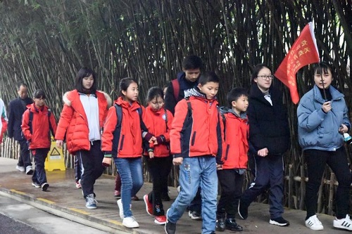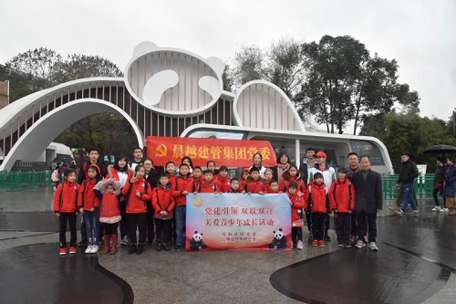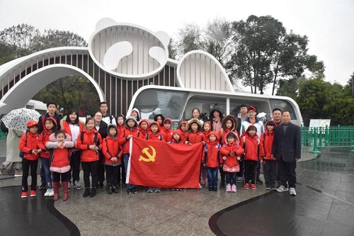 時(shí)值寒冬時(shí)節(jié),臘梅飄香,細(xì)雨蒙蒙,元旦新年之際,黨旗、國旗迎風(fēng)招展。晨越集團(tuán)黨委、紀(jì)委3人,組織成都九中(樹德)外國語學(xué)校高中生11名、廣元市朝天區(qū)大灘鎮(zhèn)貧困小學(xué)生20名、兩校帶隊(duì)教師各5人,冒著寒風(fēng)冷雨,興高采烈,匯聚到成都熊貓基地,開展愛國主義教育主題活動(dòng)。