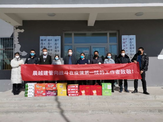 疫情防控之余,晨越建管集團作為非公黨委牢記使命擔當,組織各分公司、辦事處送物資到當?shù)胤酪卟块T,對戰(zhàn)斗在疫情一線的工作者進行慰問。