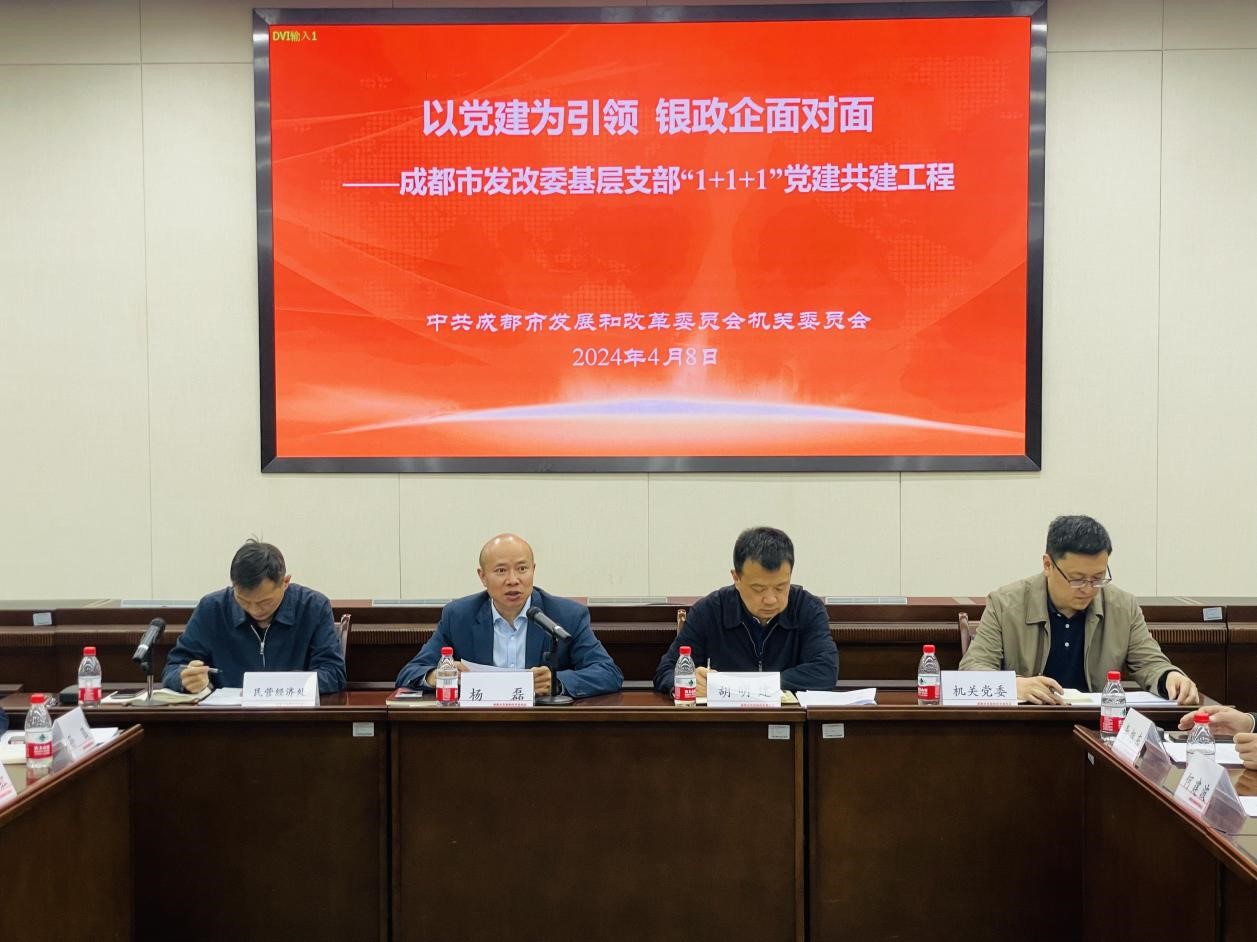 2024年4月8日,成都市發(fā)展和改革委員會(huì)“黨建共建基地”授牌儀式在成都市人民政府第一辦公區(qū)1號(hào)樓舉行。市發(fā)改委黨組成員、機(jī)關(guān)黨委書記楊磊,市直機(jī)關(guān)工委政研室主任胡明建,市發(fā)改委民營(yíng)經(jīng)濟(jì)發(fā)展處處長(zhǎng)黃強(qiáng)、市發(fā)改委機(jī)關(guān)黨委專職副書記王銳等有關(guān)領(lǐng)導(dǎo),11家成都市企業(yè)代表、21家銀行機(jī)構(gòu)負(fù)責(zé)人及市發(fā)改委經(jīng)濟(jì)體制改革智庫(kù)代表參加會(huì)議,晨越黨委委員張雷參會(huì)。會(huì)上,胡明建主任授予集團(tuán)“黨建共建基地”榮譽(yù)牌。
