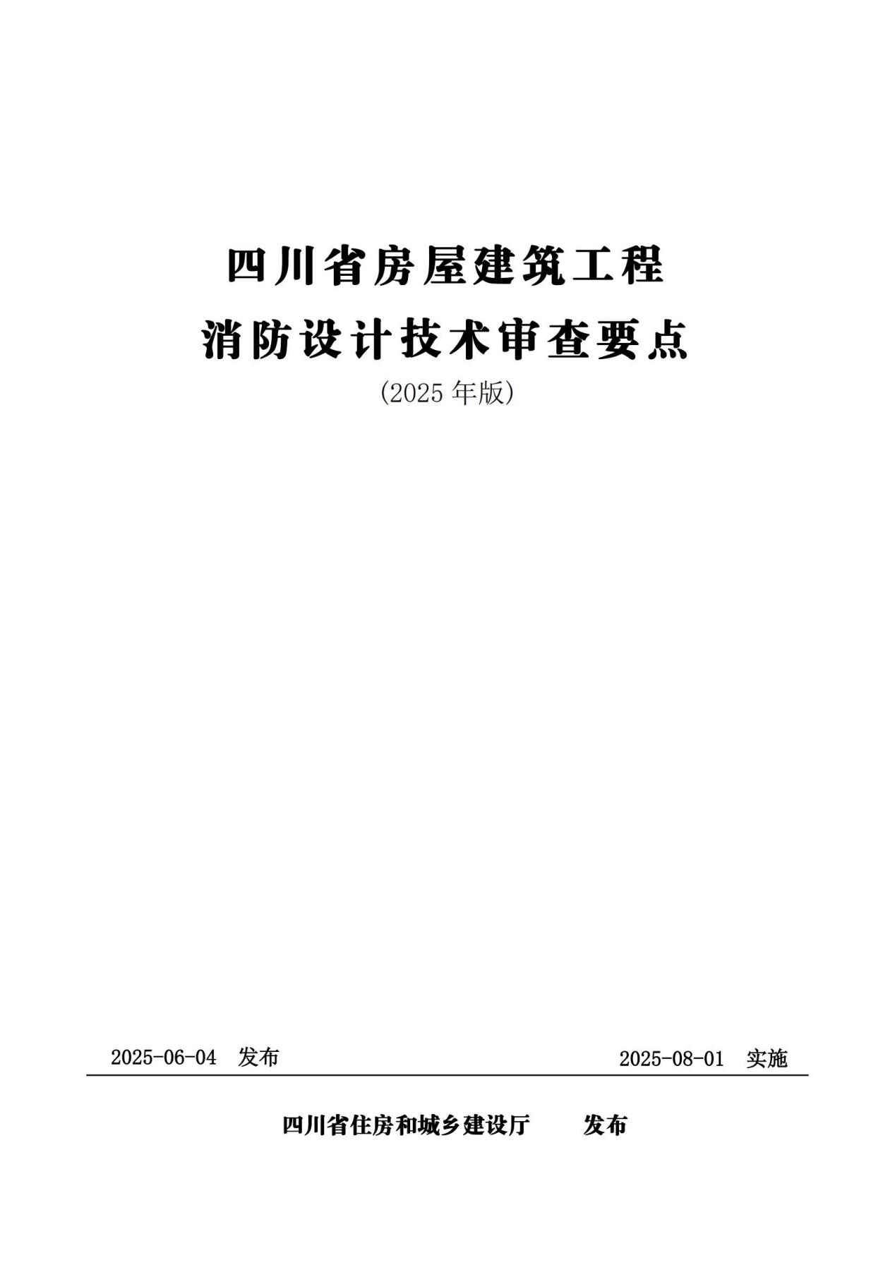 近日,《四川省房屋建筑工程消防設(shè)計(jì)技術(shù)審查要點(diǎn)(2025年版)》(以下簡(jiǎn)稱《要點(diǎn)》)正式發(fā)布,將于2025年8月1日起實(shí)施。該文件由四川省住房和城鄉(xiāng)建設(shè)廳發(fā)布,旨在進(jìn)一步規(guī)范四川省房屋建筑工程消防設(shè)計(jì)技術(shù)審查工作,提高消防設(shè)計(jì)技術(shù)審查水平,保障建設(shè)工程消防質(zhì)量。