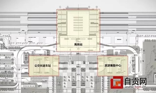此次中標(biāo)的自貢東站配套設(shè)施項目總建筑面積約26萬平方米,主要包括綜合客運樞紐(含公交樞紐站、長途客運站)、游客集散中心、站前廣場、地下綜合換乘中心(含地下停車場、出租車蓄車場、城市通廊等)、地面市政道路、下穿市政道路、高架車道、地下綜合管廊、村道改造、交通監(jiān)控系統(tǒng)及其他配套設(shè)施等。