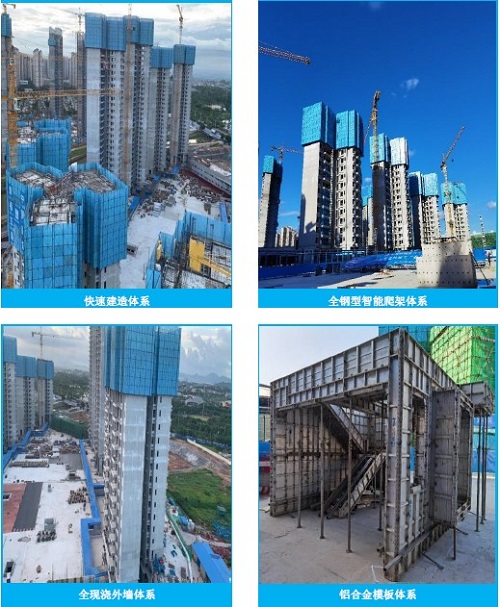 截止目前,項目已有8棟住宅樓主體封頂,二次結構、精裝修、園林、小市政、強弱電等已介入施工。項目建設過程中采用智能爬架、鋁模、全現(xiàn)澆外墻、高精砌體、薄抹灰等新工藝,形成同時具有精品質、高速度、低成本的新建造體系,大幅提升工程質量,縮短建造周期。