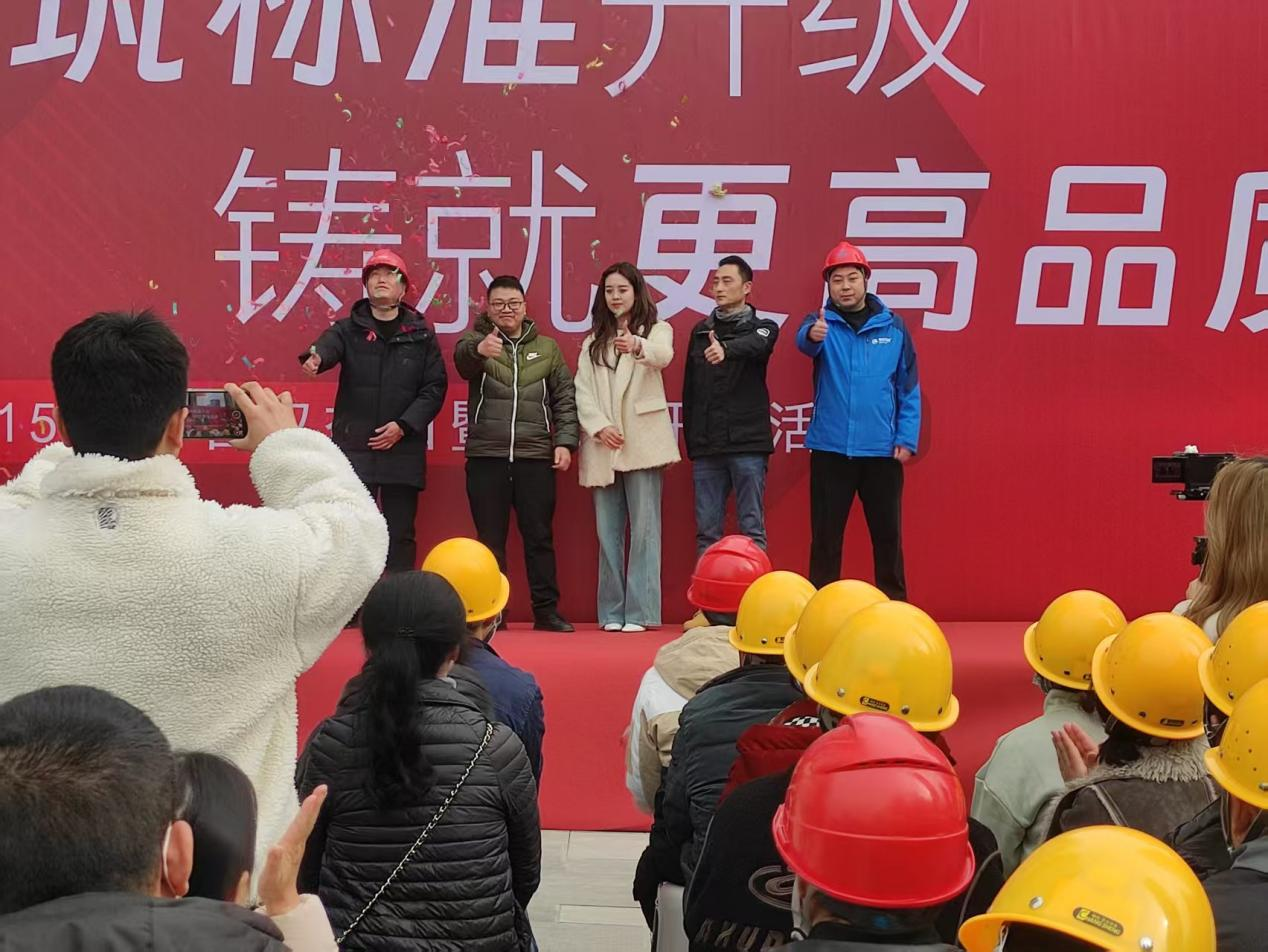 近日,在 3.15 消費(fèi)者權(quán)益日之際,備受矚目的萬錦尚府工程迎來了一場(chǎng)意義非凡的工地開放日活動(dòng)。活動(dòng)現(xiàn)場(chǎng),項(xiàng)目參建單位進(jìn)行了莊重的質(zhì)量保證宣誓,向消費(fèi)者和社會(huì)各界展示了對(duì)項(xiàng)目品質(zhì)的高度重視與堅(jiān)定承諾。