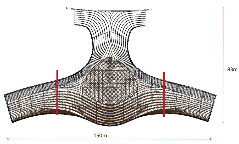 本次擬安裝的超大跨度鋼結構屋蓋橫向長度150米,縱向長度83米,因其結構形式的多重組合、支承邊界條件特別復雜,必須依托BIM三維信息模型開展鋼結構深化設計,利用Tekla軟件完成從深化設計、材料加工、切割到現(xiàn)場施工等一系列全過程BIM深化設計,實現(xiàn)設計數(shù)據(jù)與施工信息的無縫銜接。