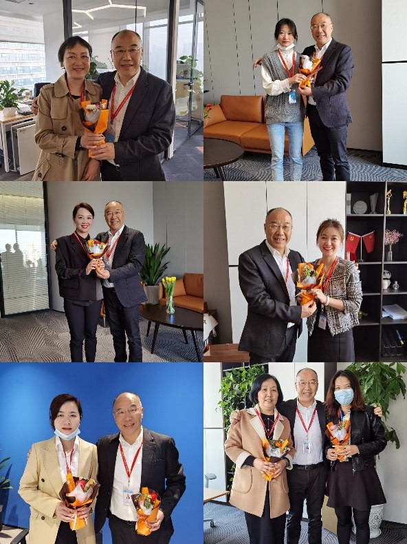 一早,集團(tuán)黨委書記、董事長王宏毅向集團(tuán)本部辦公區(qū)的女同事們送上了節(jié)日祝福。一束束鮮花襯托著女同事們美麗的笑靨,一句句祝福溫暖著每一位女同事的心靈。感受著晨越大家庭的溫暖,晨越新女性們一起慶祝屬于自己的節(jié)日。